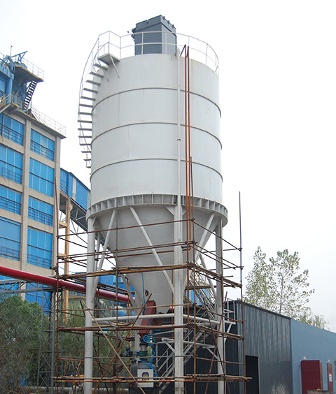 飛灰經專有輸送車輛(粉狀物料散裝罐車)輸送至水泥廠內,入廠后通過管道輸送至飛灰倉內儲存。配置一套φ6000mm飛灰儲存罐,有效儲存能力150t。