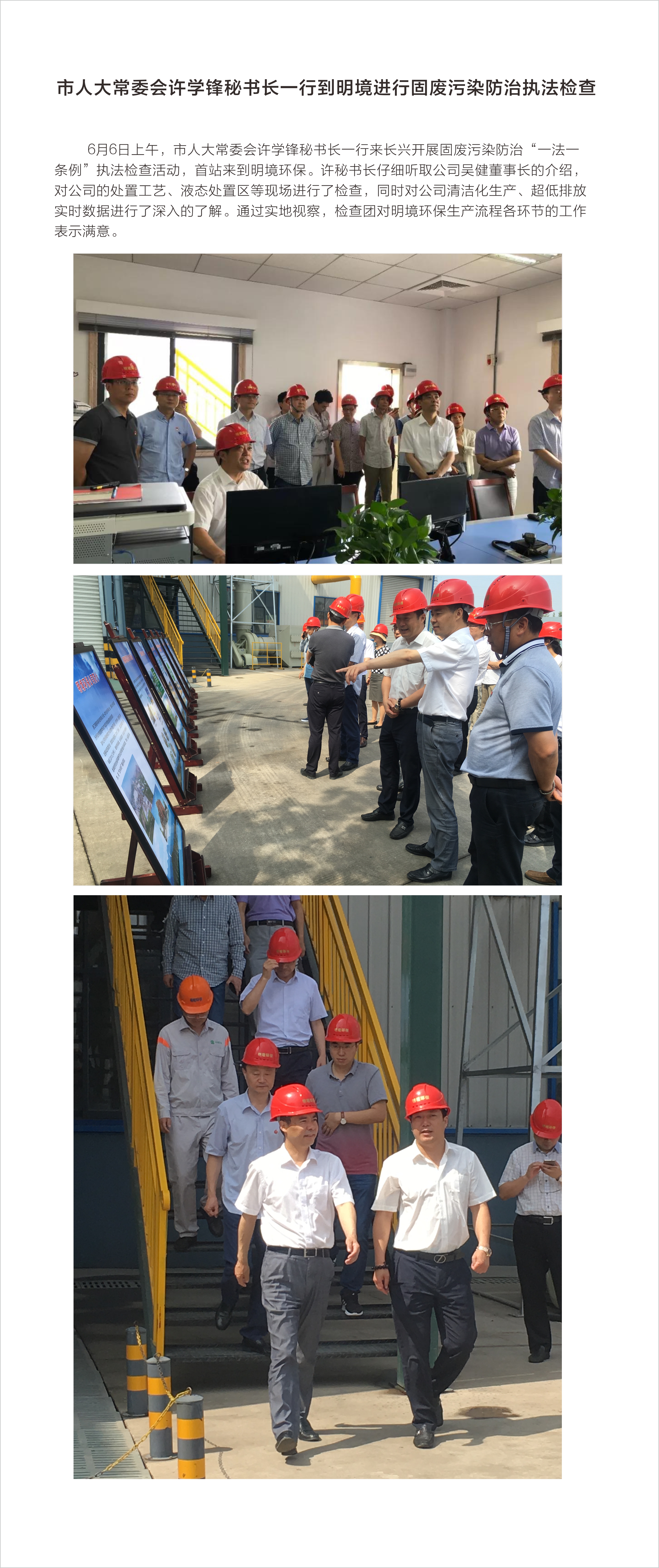 市人大常委會許學鋒秘書長一行到明境進行固廢污染防治執法檢查