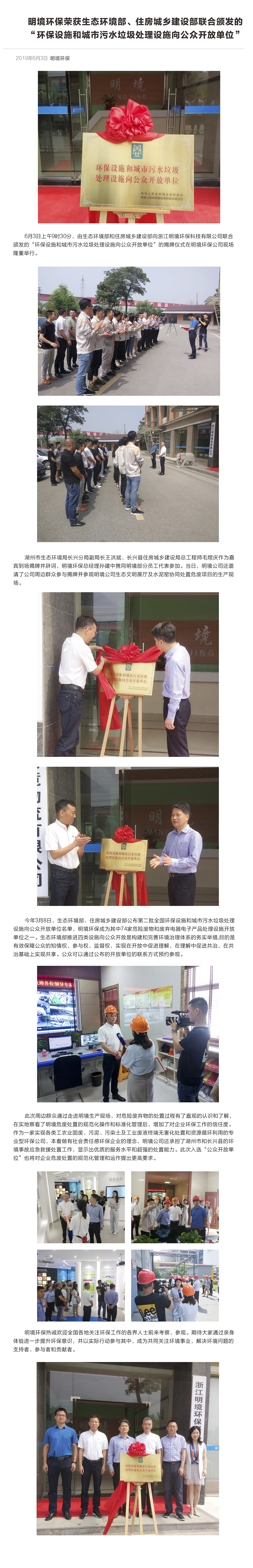 明境環保榮獲生態環境部、住房城鄉建設部聯合頒發的“環保設施和城市污水垃圾處理設施向公眾開放單位”