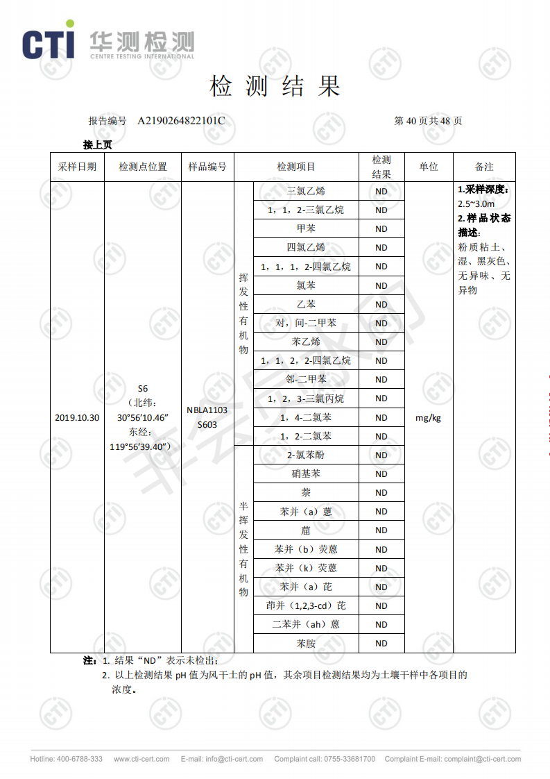 浙江明境環保科技有限公司2019年度土壤及地下水自行監測信息公開