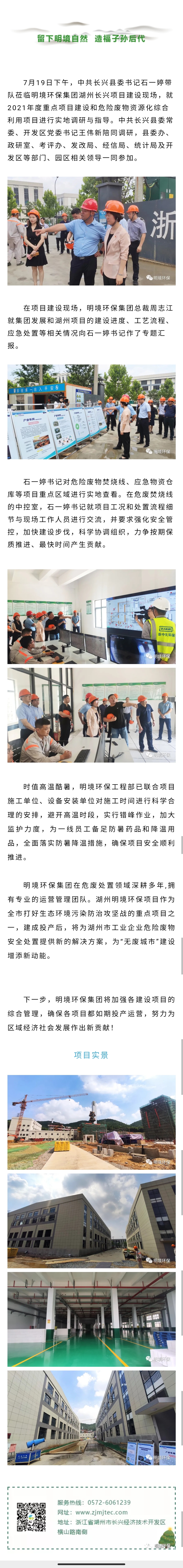 中共長興縣委書記石一婷一行蒞臨明境環保實地調研