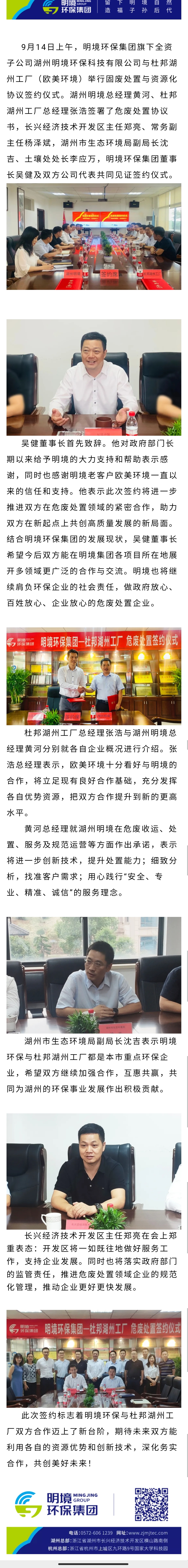 明境環保與全球知名企業杜邦公司湖州工廠簽定固廢處置與資源化協議