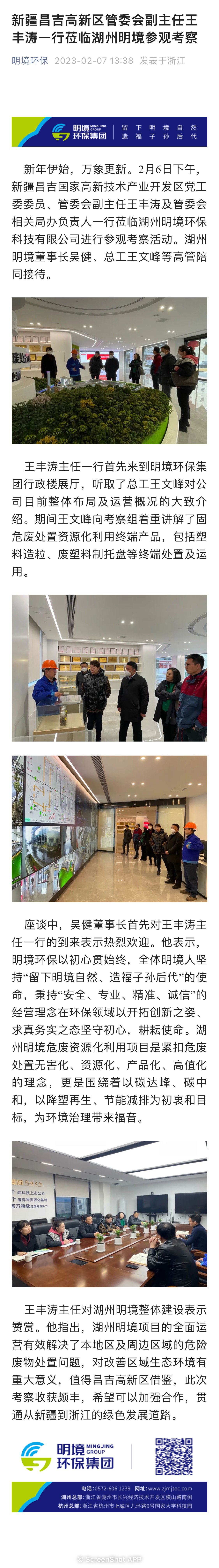 昌吉高新區(qū)管委會(huì)副主任王豐濤一行蒞臨湖州明境參觀考察