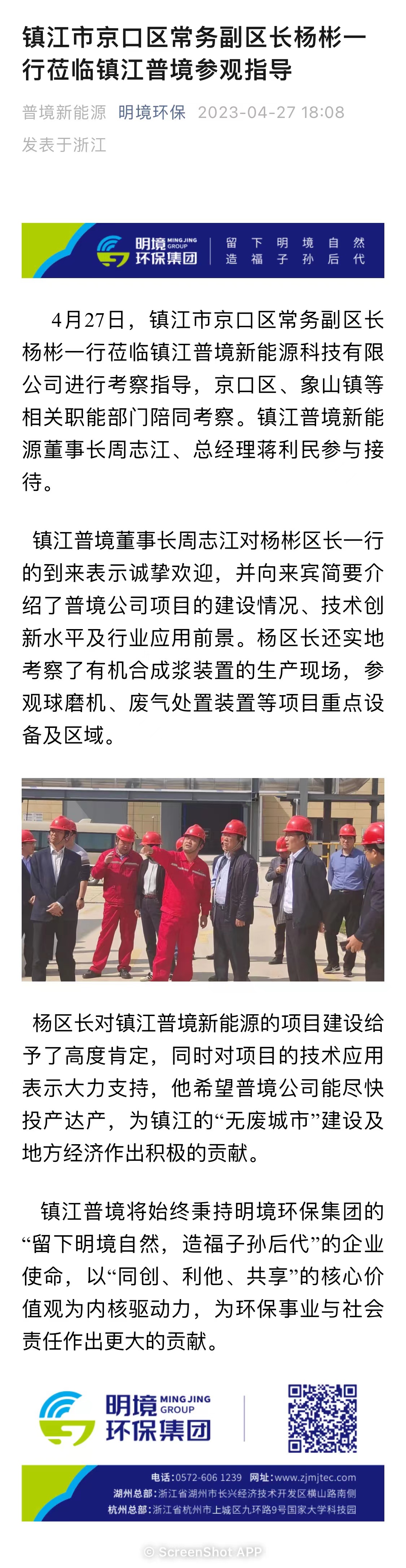 鎮江京口區常務副區長楊彬一行蒞臨鎮江普境參觀指導